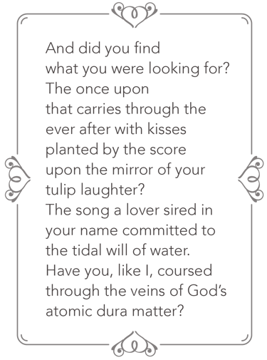 Coming soon! Captured on the tongue of poetry, "A Kiss Everlast" is a collection of romantic professions and turn ons exchanged between myself and my lover. For the first three years of our (ongoing) romantic courtship, we unleashed a storm of poetry onto each other, on average one poem a day. Their summons made up for the lack of being in each other’s presence (and still does). "A Kiss Everlast" pulls the best from thousands we've written to each other over the past decade, evoking the memory of legendary lovers throughout history.